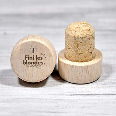 Bouchon personnalisé en liège et bois - Fini les blondes